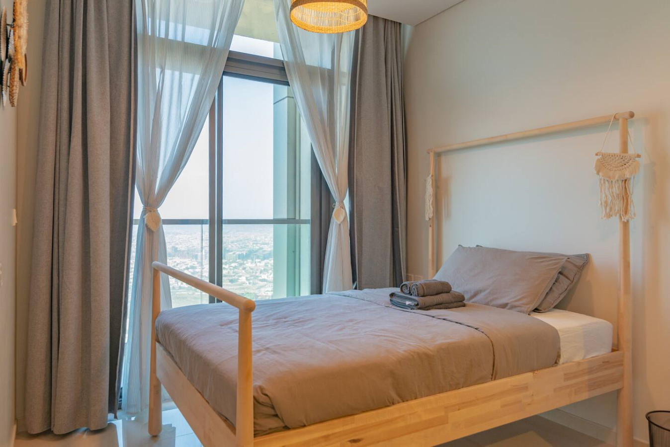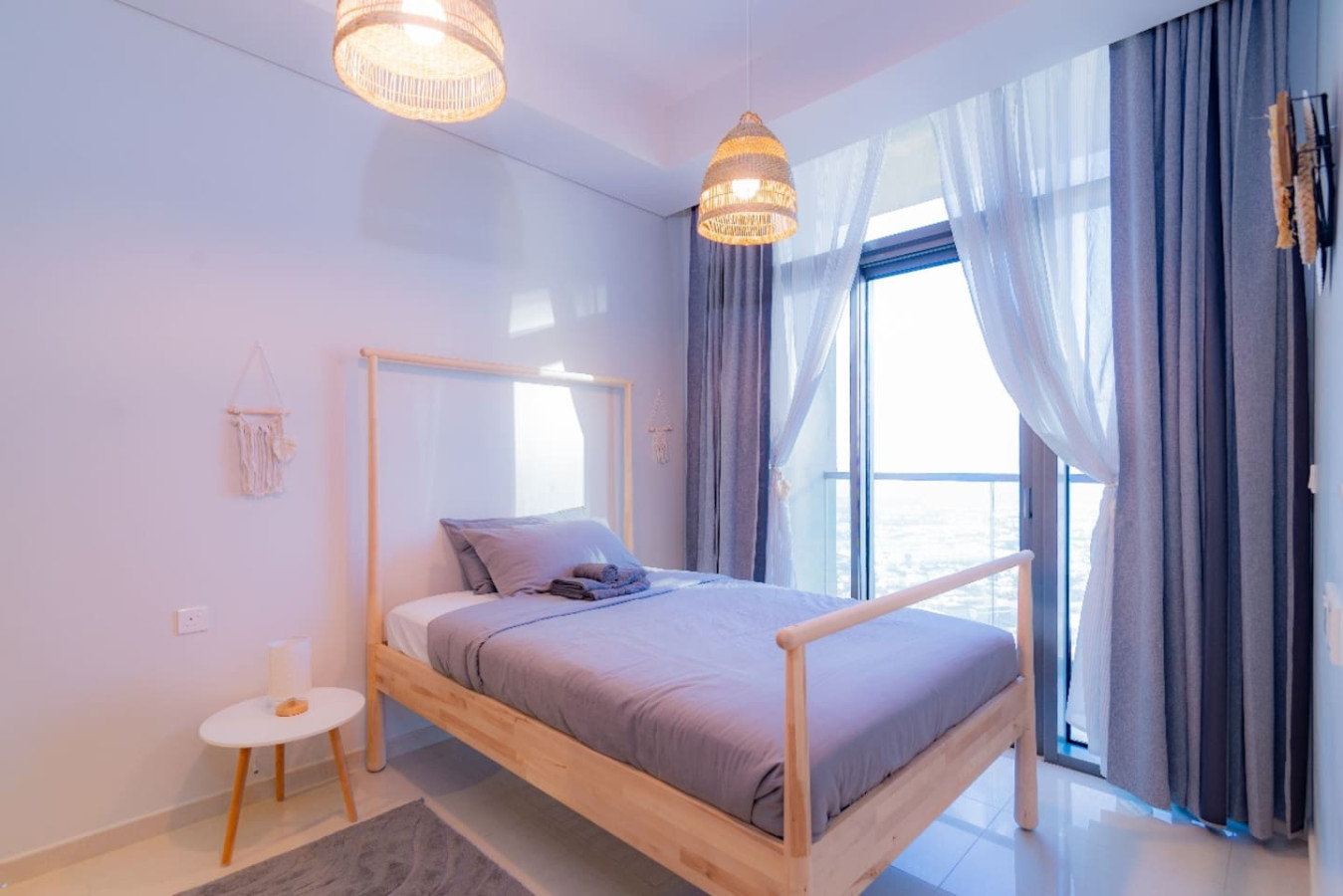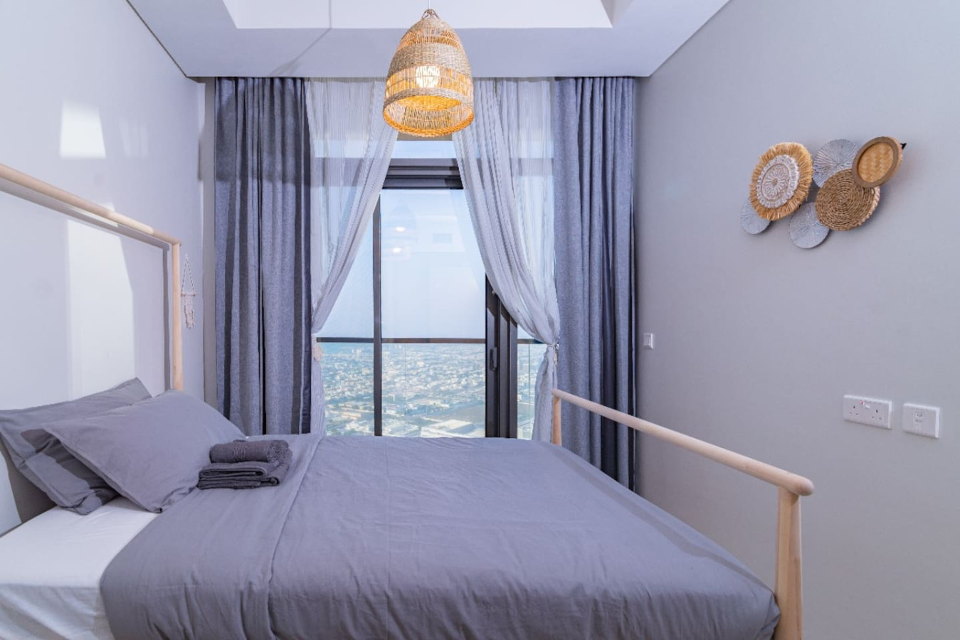 Welcome to a luxurious 57th-floor 2-bedroom apartment in Business Bay, offering stunning ocean and skyline views. The space features spacious bedrooms with plush beds, a modern living area with floor-to-ceiling windows, a fully equipped kitchen, and spa-like bathrooms. Enjoy the private balcony, high-speed Wi-Fi, and access to a pool and gym. Located minutes from the Dubai Mall and Burj Khalifa, this apartment is perfect for business or leisure. Book now for an unforgettable Dubai stay!