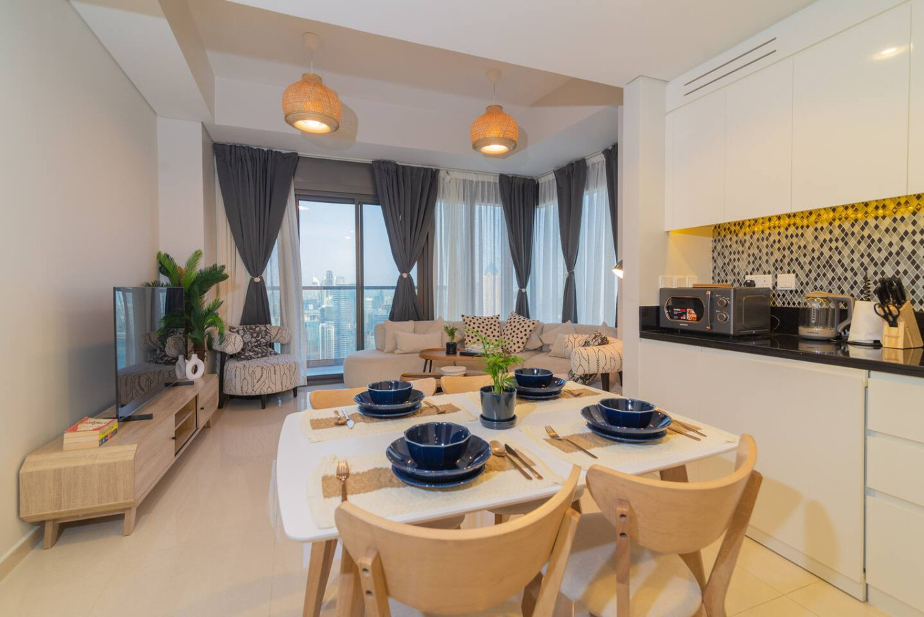 This unique place has a style all its own. Perched high on the 52nd floor, this stunning 3-bedroom apartment offers breathtaking, three-sided panoramic views of the ocean, the iconic Dubai Canal, and the vibrant city skyline. Spacious, bright, and elegantly designed, every room is framed by floor-to-ceiling windows, flooding the space with natural light and unforgettable scenery.